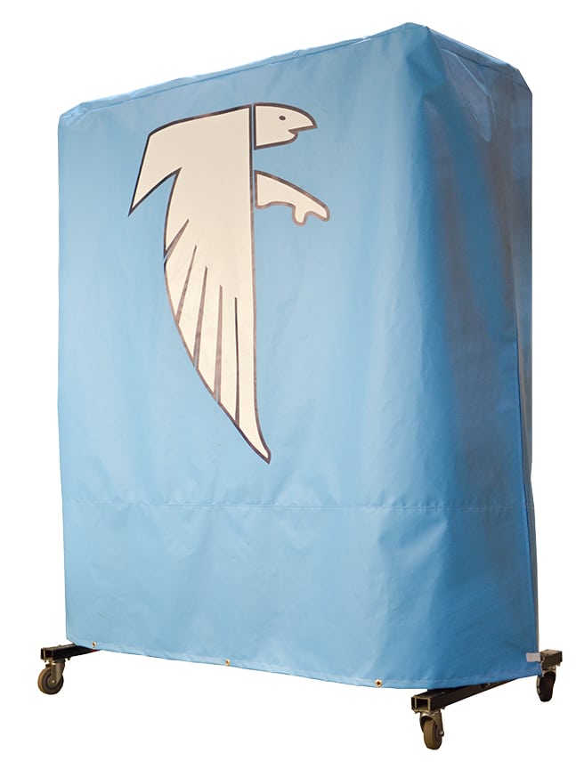 Fisher Chair Cart Cover will protect your chairs from scuffs and scratches during storage. It is designed to fit over a fully racked chair cart. Available in stock black, custom colors and they can be customized with your team logo and lettering on one side.