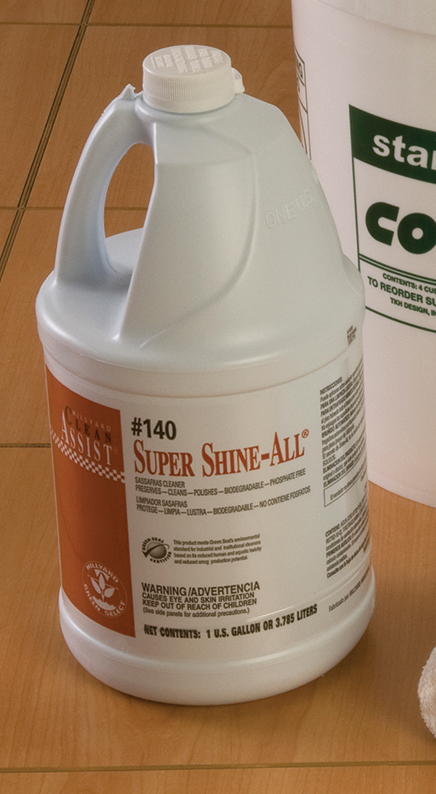 - Super Shine All – Your Ultimate Cleaning Solution – a concentrated, neutral pH formula meticulously designed to care for your floor finish while providing exceptional cleaning results. This versatile cleaner is perfect for various surfaces, including resilient tile, asphalt tile, vinyl floors, synthetic floors, terrazzo, quarry tile, paver brick, natural stone, and coated wood floors. Its protective sheen helps preserve and protect your floors, ensuring they maintain their pristine appearance.