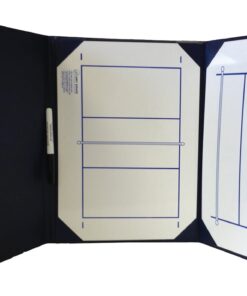 The KBA Playmaker Folders are perfect for pre-game planning and on the court instruction for players. They include inserts that have a dry erase surface with your choice of basketball or volleyball court that easily wipes clean. The folder has a pocket for storing and organizing papers. Made with durable vinyl plastics for long lasting use.