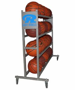 - 4 tiers, holds 20 basketballs. Dimensions: 51¾” L x 20½” W x 37½”H